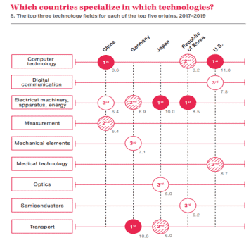 Aşağıdaki tablo ise hangi ülkelerin hangi teknolojilerde önde olduğunu gösteriyor:
