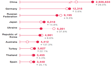Dünya genelinde 15.9 milyon adet patent aktif durumda. Bu sayı bir önceki yıla kıyasla %5.9 artmış. Faydalı modellerde bu oran %30 artışla 7.3 milyona tırmanmış.